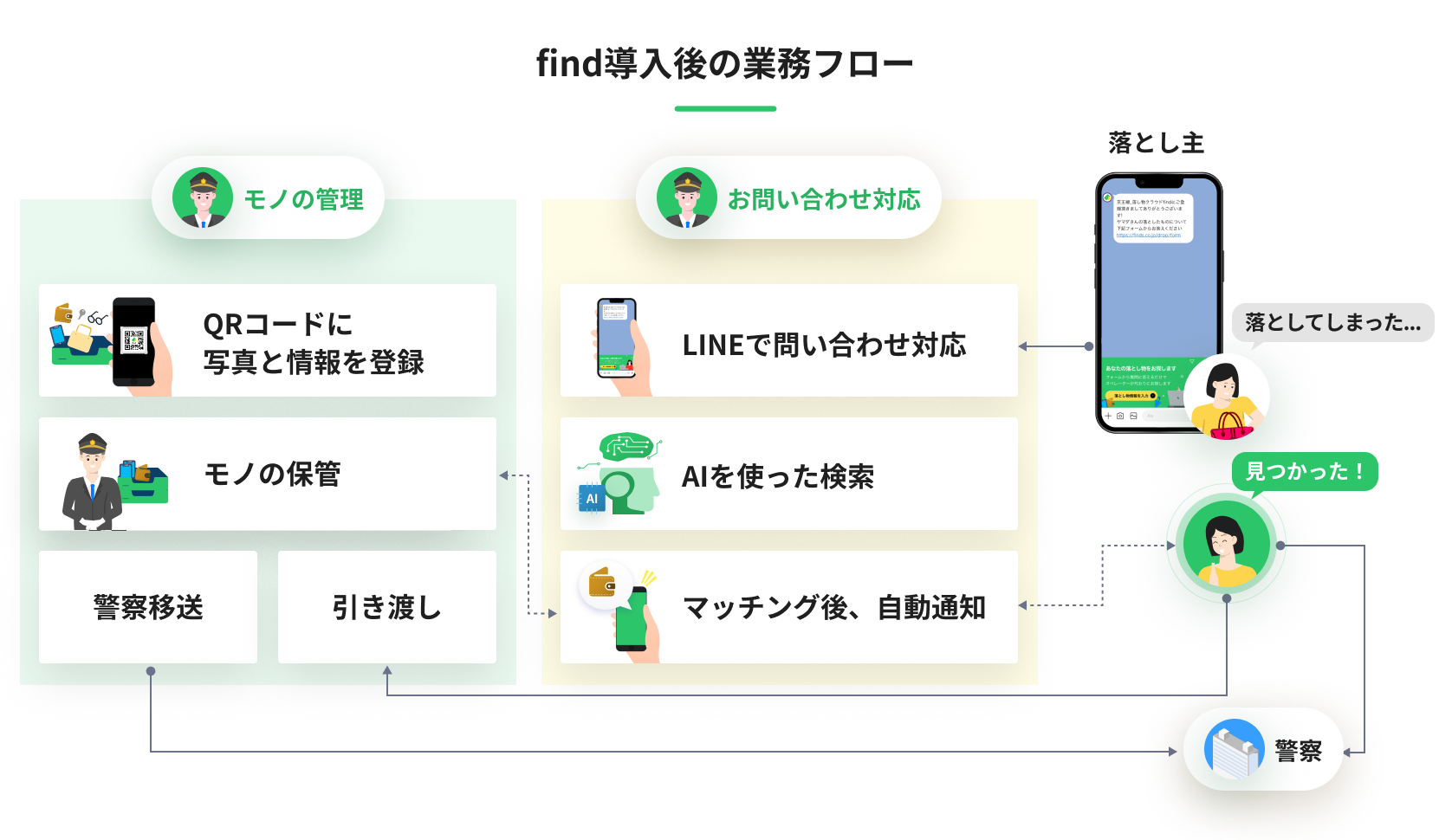 スマートな落とし物対応業務を実現します。(下記イメージ)