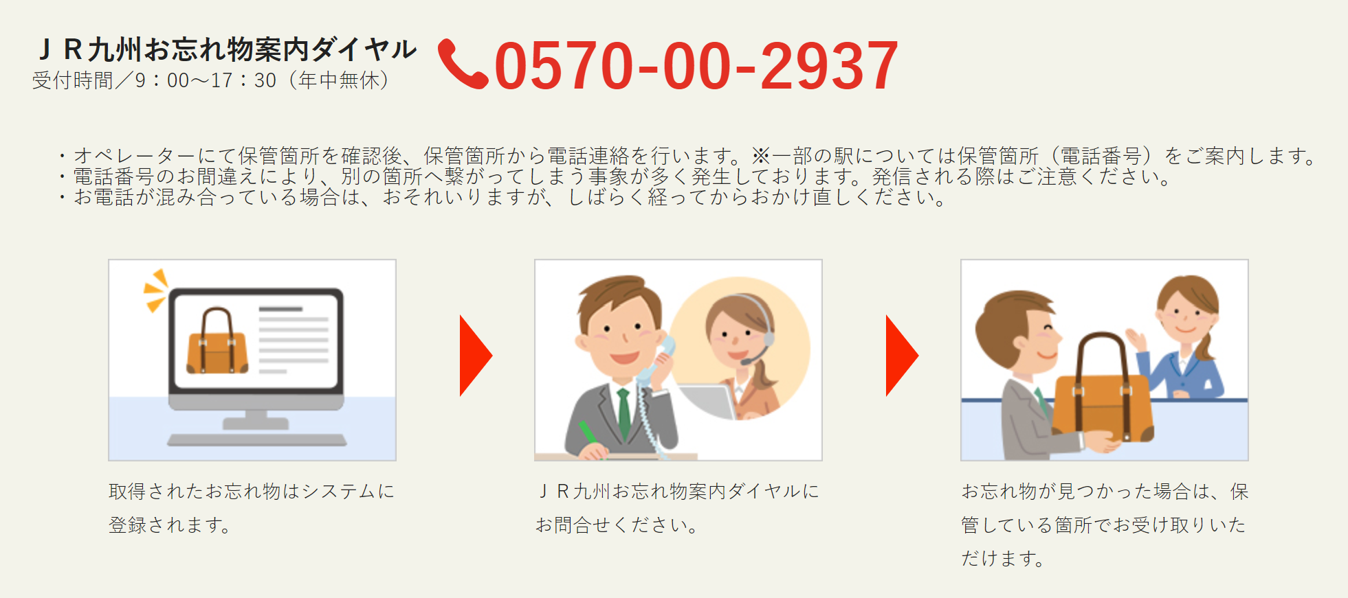 (参考:現在のお問い合わせ対応)駅係員やJR九州お忘れ物案内ダイヤルにて対応を行なっております。