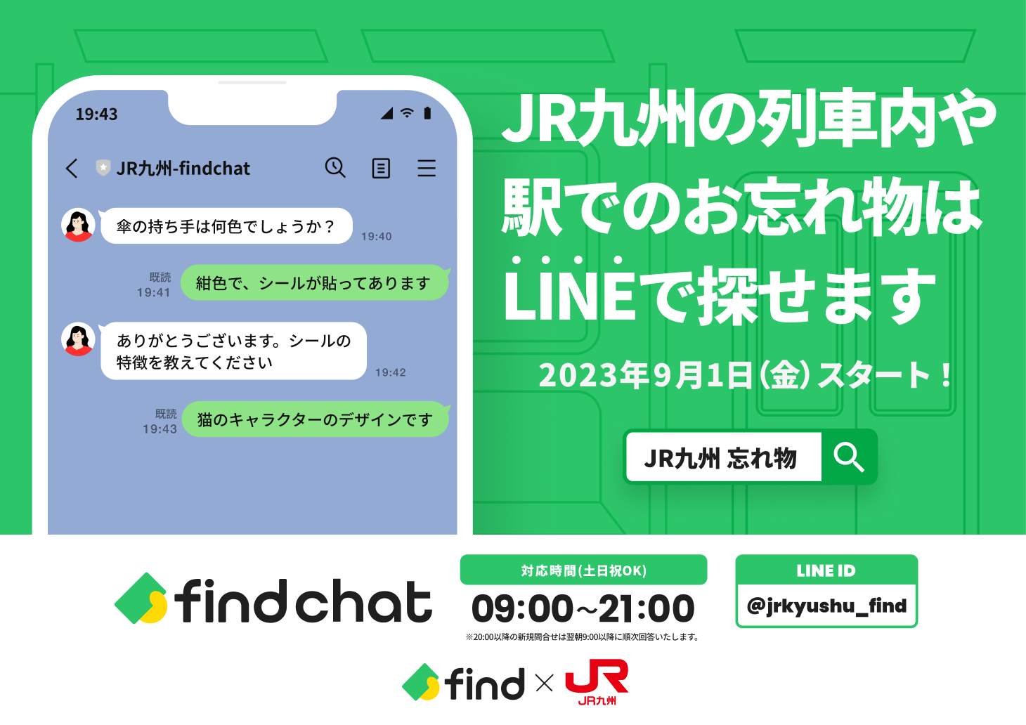 九州旅客鉄道株式会社 (本社:福岡県福岡市、代表取締役社長執行役員:古宮 洋二、以下「JR九州」)は、株式会社find(本社:東京都中央区、代表取締役CEO:高島 彬、以下「find」)が提供する「落とし物クラウドfind」を導入します。