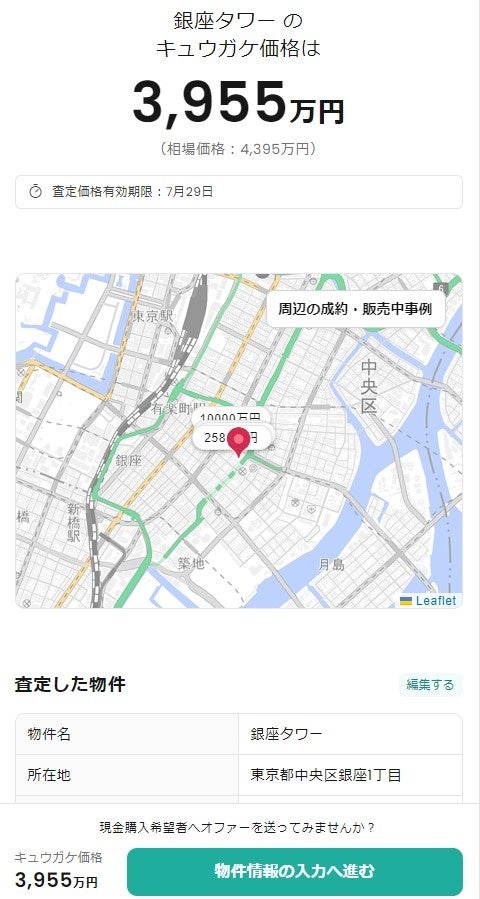 キュウガケに採用した価格推定エンジンはMER2.93という業界最高水準の正確性を誇り、査定可能な物件数はおよそ15万件、一都三県(東京都・千葉県・神奈川県・埼玉県)を網羅している点が高く評価されています。