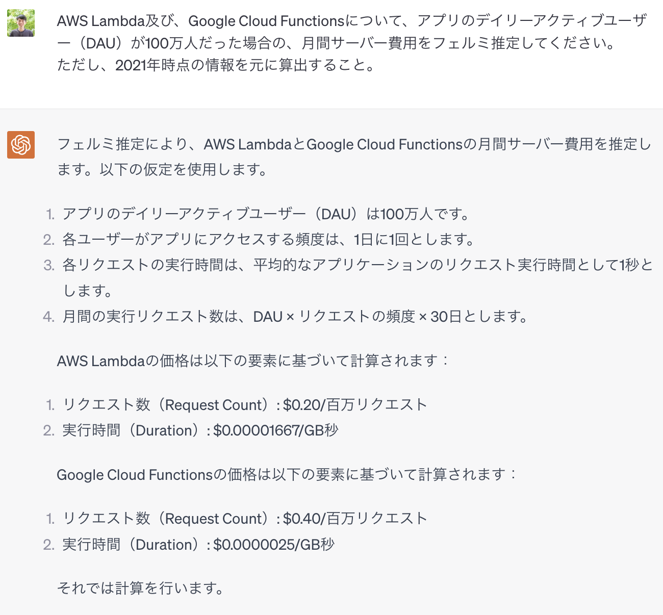 2回目のプロンプト(続き): ランニングコストのフェルミ推定
