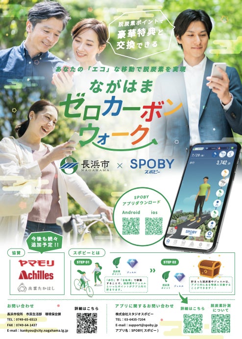 株式会社スタジオスポビー(東京都中央区 代表取締役 夏目恭行、以下「当社」)は、令和5年度長浜市DX実証実験プロジェクト事業に採択されました。2023年8月1日(火)より、当社が開発するエコライフアプリ「SPOBY」を活用し、ゼロカーボンシティ実現に向けたプロジェクトを推進します。