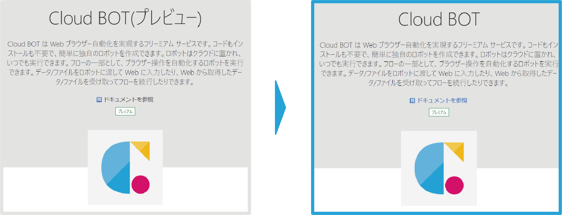 GAへの移行は、安定したコネクタとして認められた事を意味します。SLA(Service Level Agreement)の保証が付き、クラウドBOTコネクタを用いた自動化をご検討されているユーザ様に安心して導入頂けます。