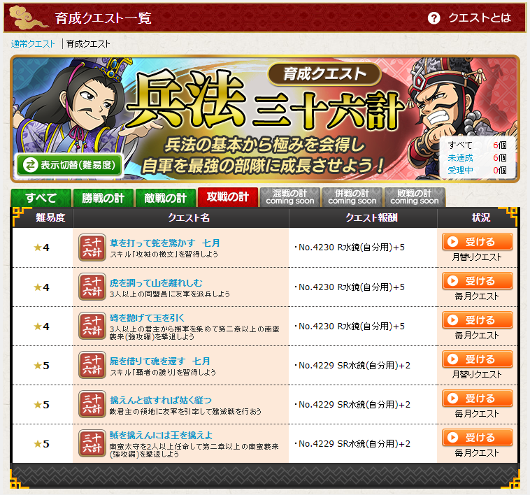 育成クエスト「兵法三十六計」はクリア条件がより実践的!