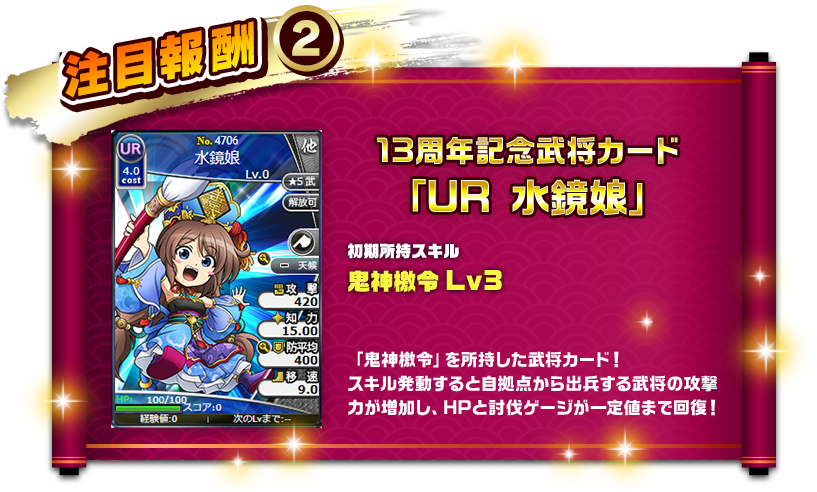 ◆13周年記念武将カードが貰える特別ログインボーナス開催!