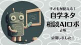 「子どもが使える自学ネタ相談AIロボ β版」は、子どもたちが日々取り組む自主学習(自学)のテーマに困った時、迷った時に相談できるチャットボットです。