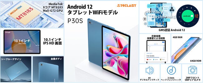 Android 12 TECLAST P30S タブレット 10.1イン WIFI チモデル 4GB+64GB +1TB TF拡張 MTK8183 8コアCPU 1280*800 HD 広視野角 IPS画面 GMS認証 Android タブレット Bluetooth5.0+GPS測位機能 6000mAh,タブレット付属日本語マニュアル [SIM対応しない]
