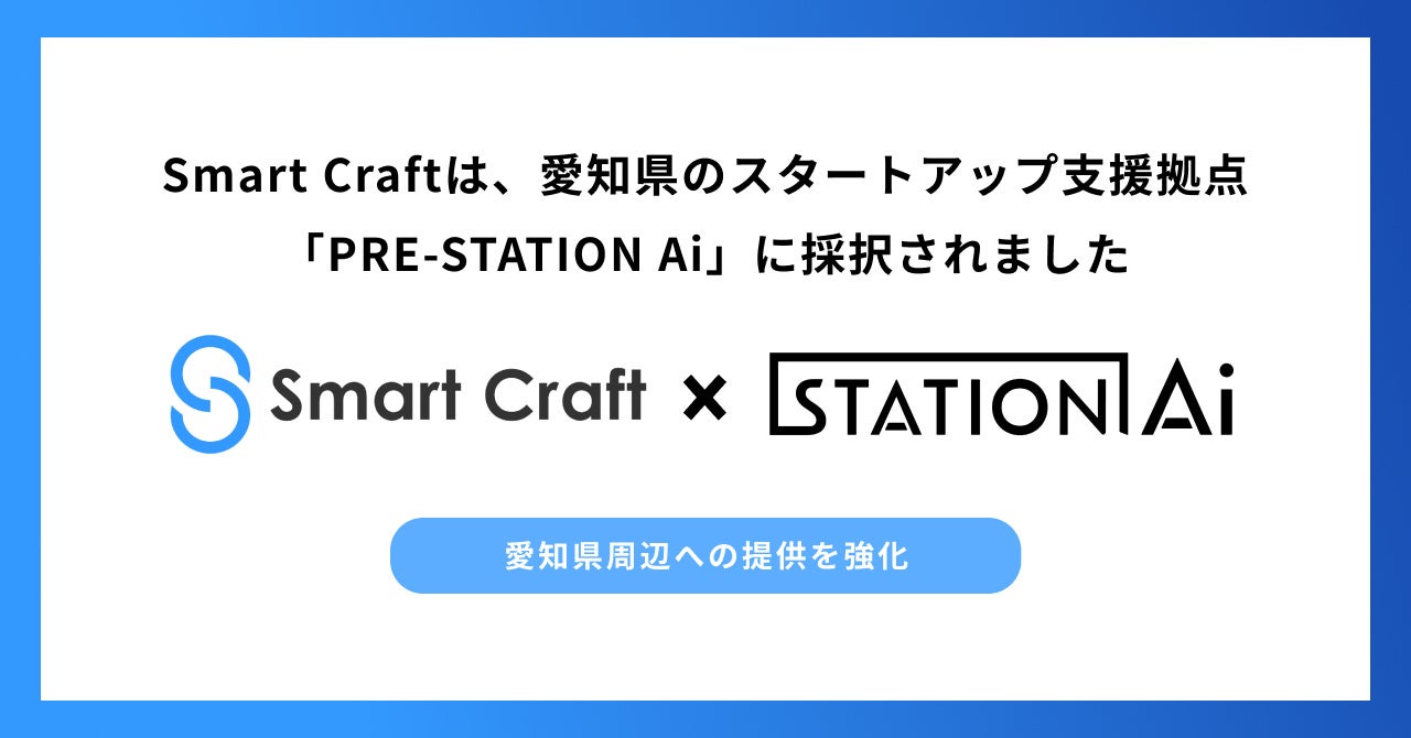 この度、株式会社Smart Craftは、愛知県のスタートアップ支援拠点「PRE-STATION Ai」のRemoteメンバーに採択されました。