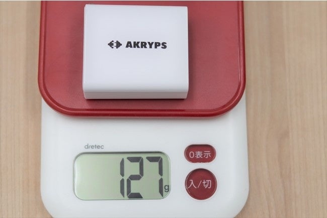 この「AKRYPS PD 100W GaN AC」は、サイズだけではなく軽さも魅力のひとつです!重さは、iPhoneシリーズで最も軽いとされるiPhone miniよりもさらに、軽い『127g』になります。