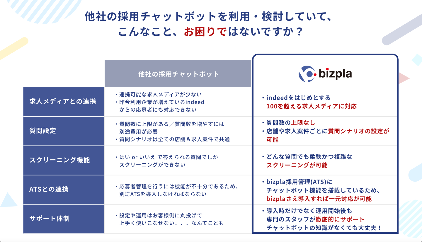 「ビズプラ(bizpla)採用管理」の<採用チャットボット>の優位性
