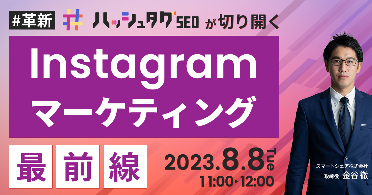 8/8(火)11:00〜12:00に「ハッシュタグSEO」とInstagramマーケティングの最新動向について解説するウェビナーを開催致します。
