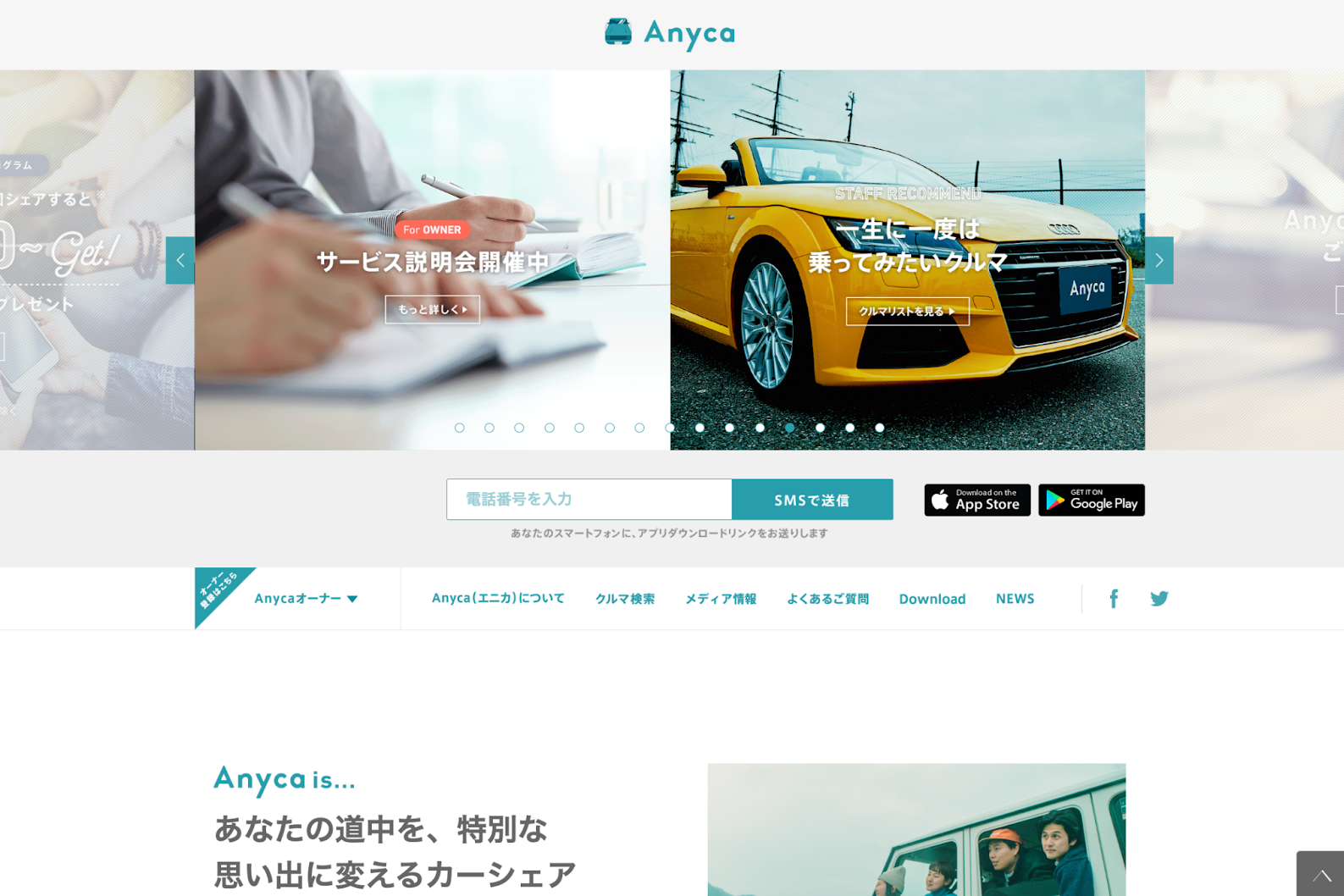 「エニカ」は、個人や法人が所有するクルマをカーシェアリングできるプラットフォームサービスです。クルマのオーナーは自分がクルマを使わない間にカーシェアすることで、クルマの維持費を軽減することが期待できます。ドライバーにとっては、豊富な車種の中から、希望のクルマに乗ることができます。共同使用契約に基づく個人間カーシェアと、1 時間単位で利用可能なAnyca Official シェアカーのカーシェア(レンタカー形態)を提供。2015年にローンチし、累計登録会員数は70万人以上、登録車種数1,100以上、累計登録台数2万8,000台以上です。(2022年末時点)