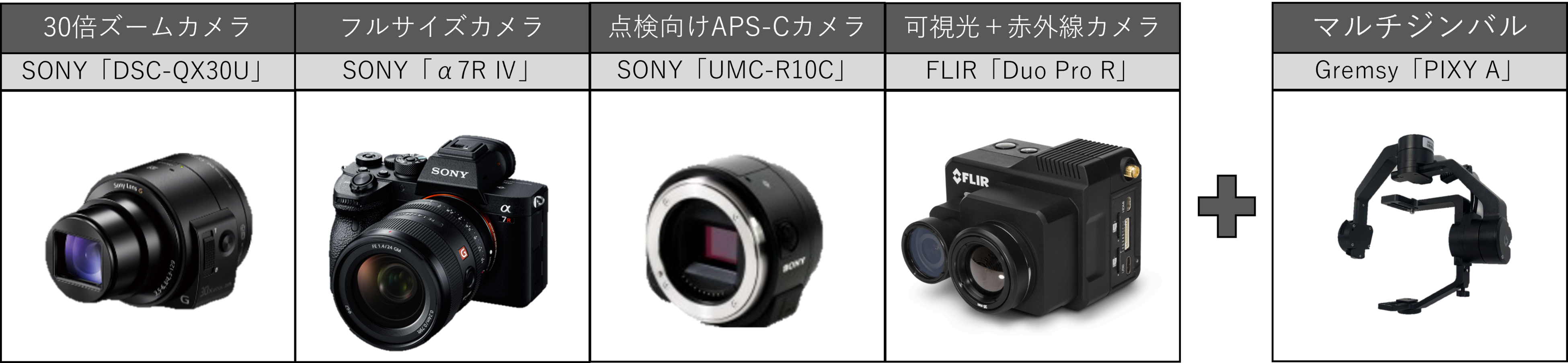 (カメラは可視や赤外線、ズーム機能搭載の可視カメラがあり、様々な点検業務に対応)