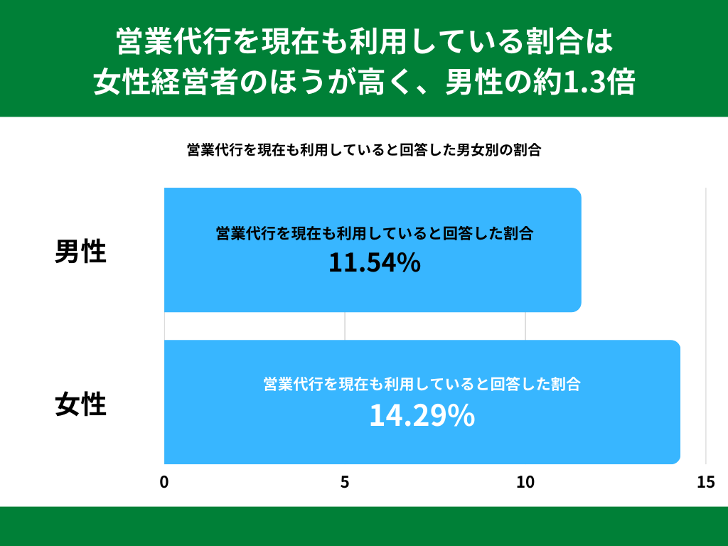 【営業代行を現在も利用している割合は女性経営者のほうが高く、男性の約1.3倍】