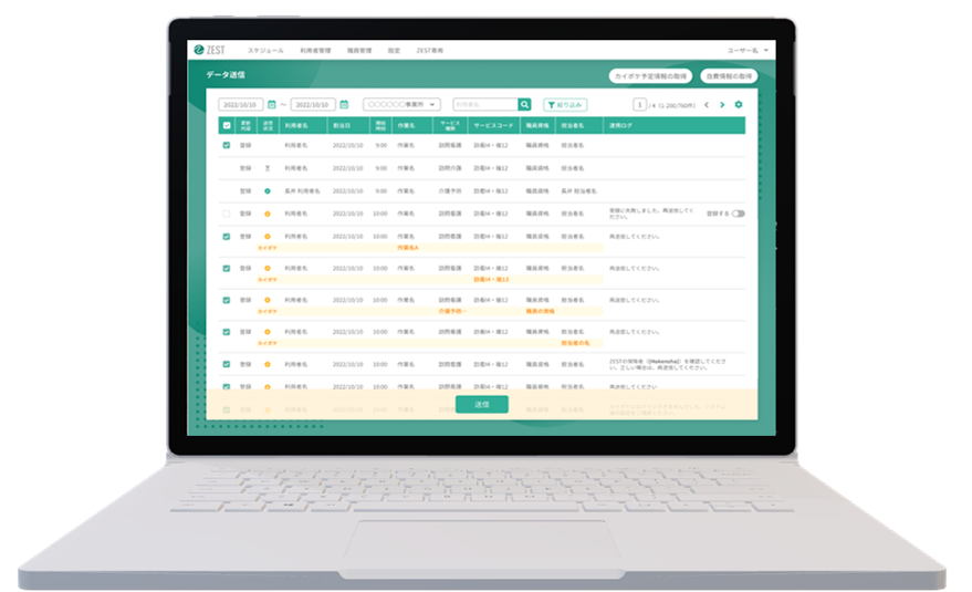 訪問スケジュールを作成するのに必要な利用者さんやスタッフの情報もZEST側に簡単に取り込むことができます。そのため、初期導入に時間を要すことなく、すぐにZESTをご利用できます。