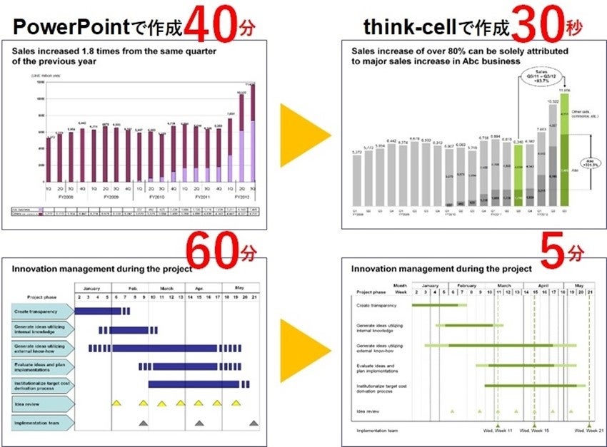 世界25,000社で使われ100万人を超すユーザーを持つthink-cellは、日本国内では大手コンサルティングファームを中心にユーザー数を増やしているビジネスパーソン必見のツールです。