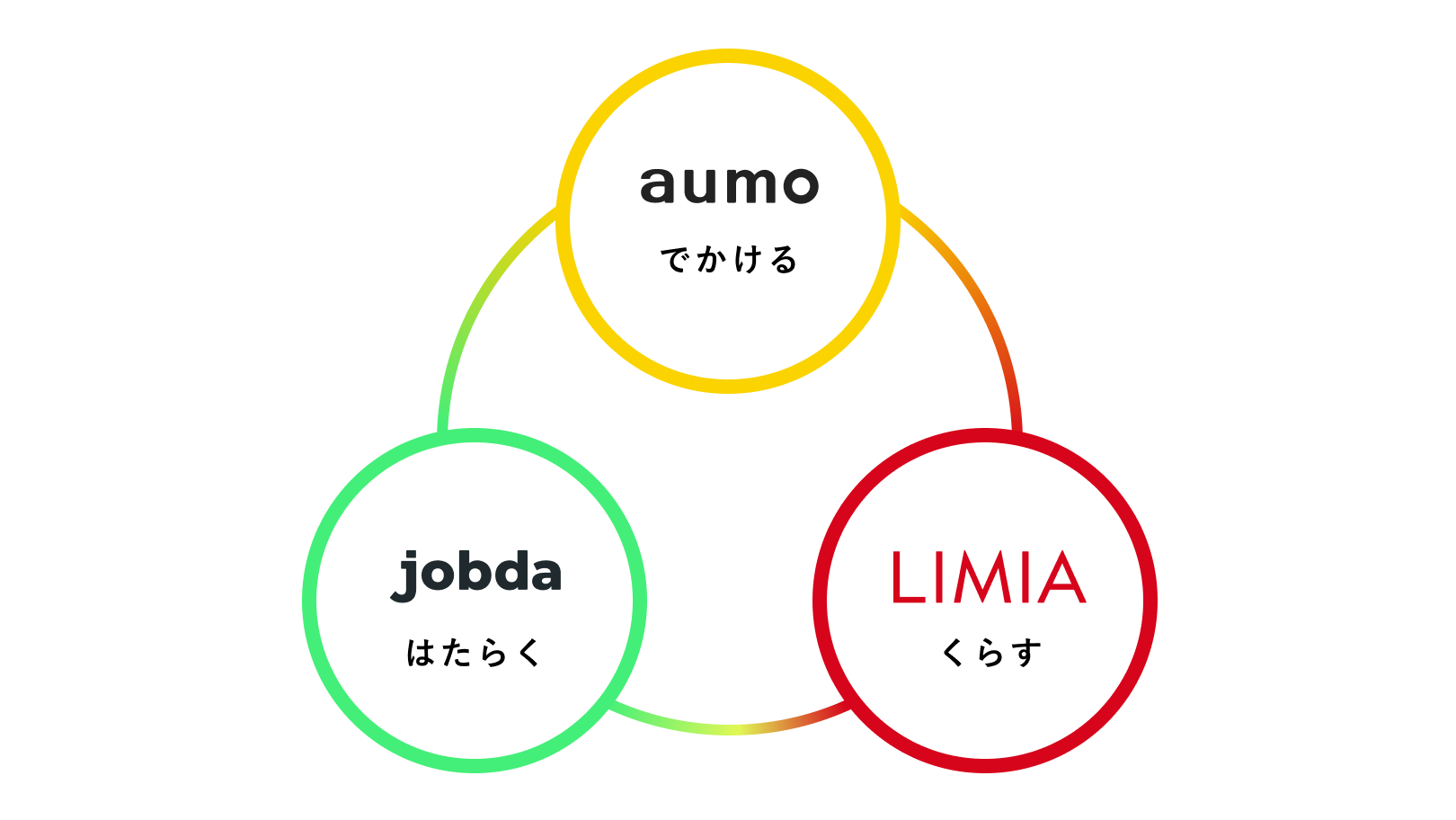 コマース事業では、アウモのサービスである「出かける」、新たに設立したジョブダのサービスである「働く」、リミアのサービスである「暮らす」を3つの柱とし、人々のライフスタイルに欠かせない「出かける」「働く」「暮らす」に関連した良いプロダクトをつくり、全ての方へ網羅的に価値を提供していくことを目指します。