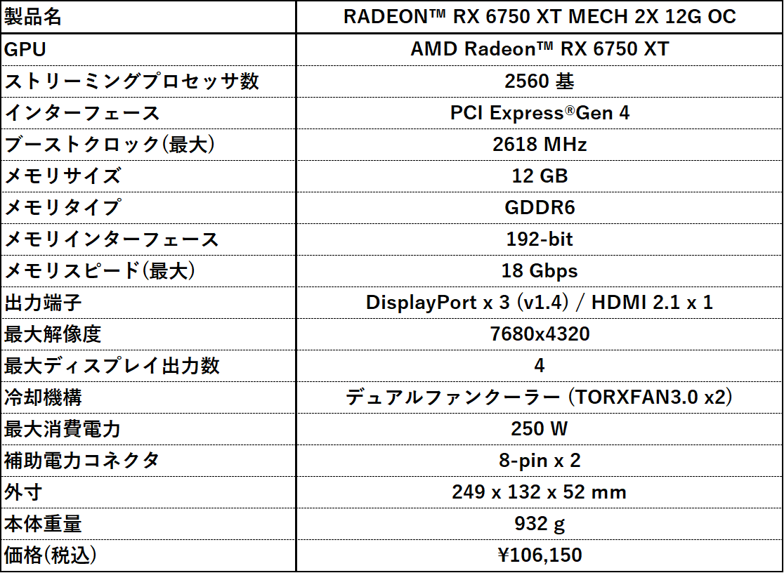 https://jp.msi.com/Graphics-Card/Radeon-RX-6750-XT-MECH-2X-12G-OC