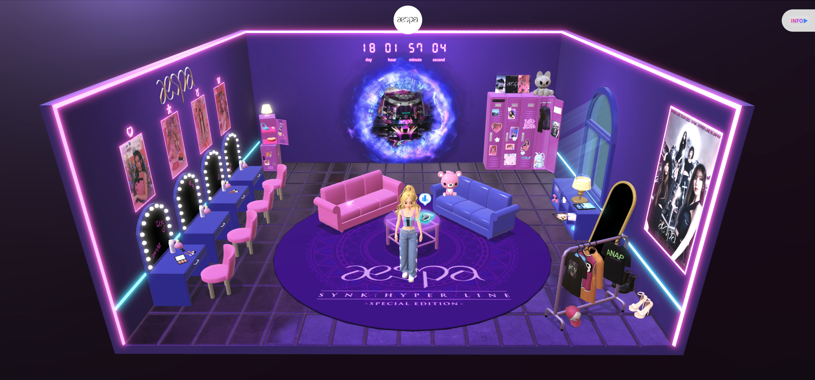 アプリダウンロードなしですぐ入場出来るウェブの特徴をより展開しているため入場までの時間も数秒いないで入場することができ、aespaのコンセプトに完全にカスタマイズした空間とミニゲーム、アンケートなどを提供してます。