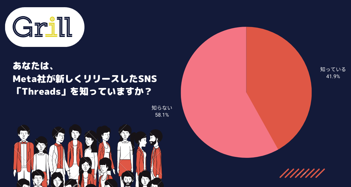 ニュースキュレーションアプリ「グノシー」を利用する一般ユーザー1万人へアンケート調査を行ったところ、「Threads」を知っているという方が41.9%、知らないという方が58.1%となった。
