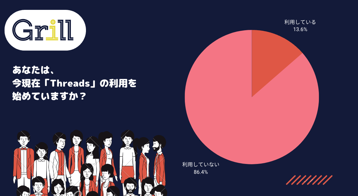 「Threads」を知っていると回答した方の中で、実際にアプリをダウンロードして利用を開始していると答えた方は13.6%に留まり、86.4%の方は知ってはいるが使っていないという結果となった。