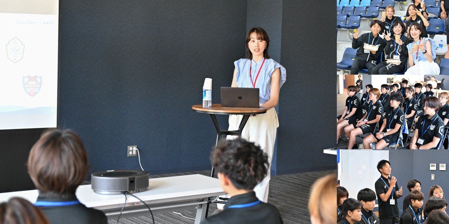 そのプロジェクト第一弾として、サッカーを続けながら働いているFC今治レディースをキャリア形成面でサポートする「キャリアオーナーシップ」セミナーを実施しました。キャリア形成を意識するきっかけを作り、女性アスリートのセカンドキャリアを多様なものにしていくことが目的の取り組みです。