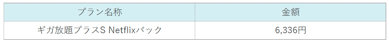 本料金プランは、月額6,336円でご利用いただくことができ、「ギガ放題プラスS」(通常4,950円/月)と、「Netflix(スタンダード)」(通常1,490円/月)を、それぞれ個別にご契約いただくよりおトクになります。