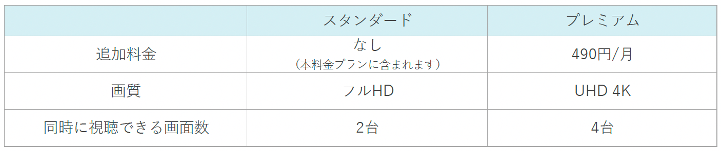 Netflixの「スタンダード」では、見逃せない作品群をフルHDの高画質で2台同時にお楽しみいただけます。また、所定の料金を追加してお支払い※2いただくことで、「プレミアム」に変更することが可能です。