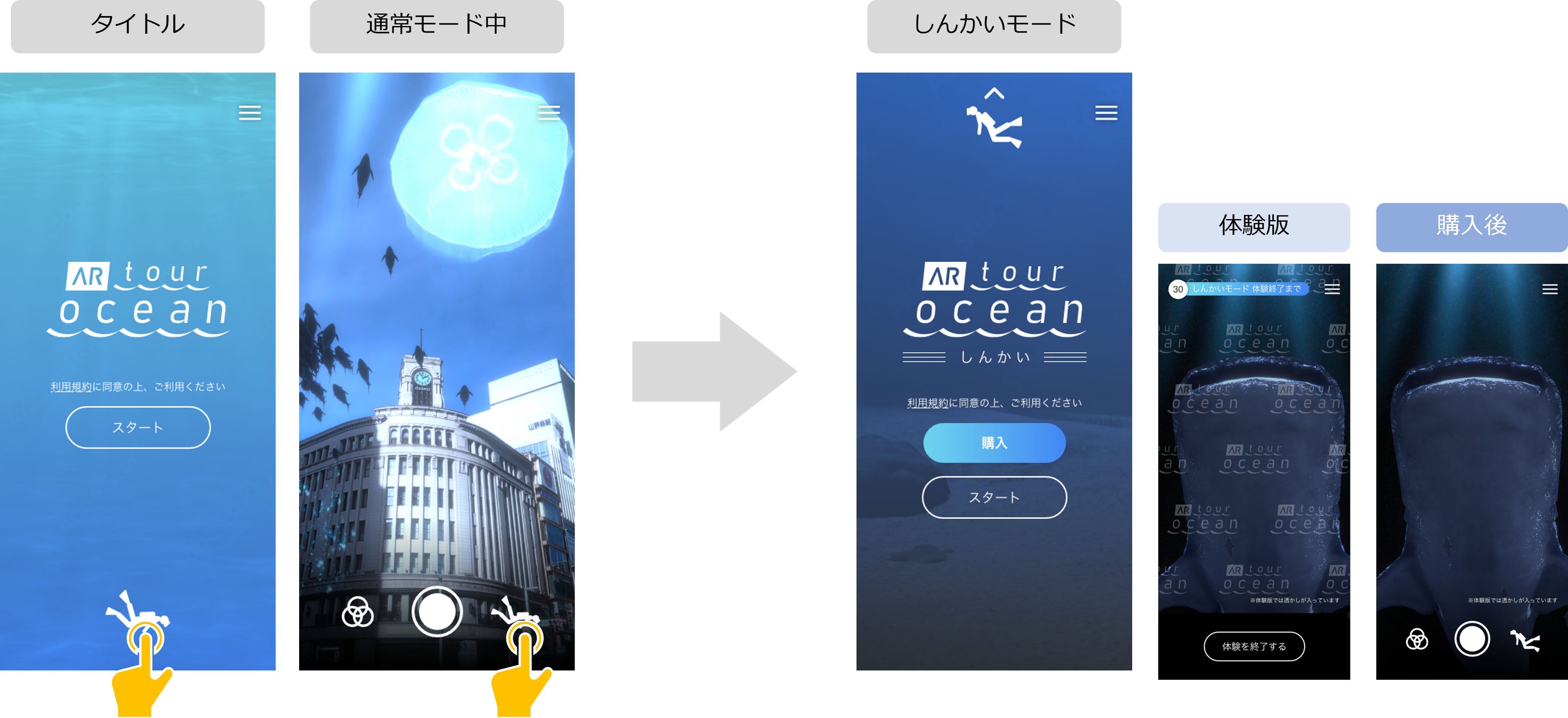 ・App store:https://itunes.apple.com/jp/app/ar-tour-ocean/id1284557703?mt=8