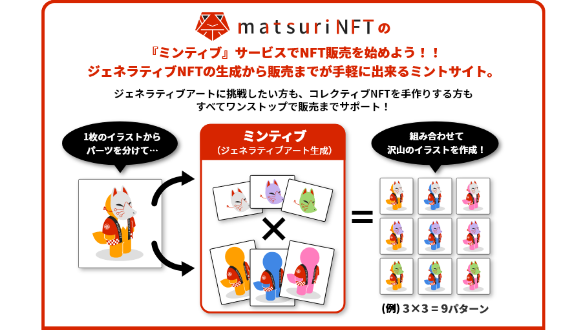 (メリット)ジェネラティブNFTの生成システムをmatsuriNFTに設置予定(設置するまでは個別に生成サポートを行わせていただきます)