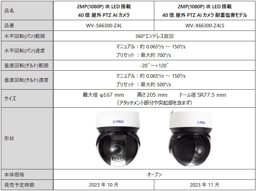 i-PROはこれまでも用途に応じた屋外用PTZカメラのラインナップをそろえてまいりました。今回発表の本機種は、40倍光学ズーム、最長照射距離250mの赤外線(IR)LED、そして、IR-LED搭載PTZカメラとしては初めてとなるAIプロセッサーを、新開発の業界最小クラス(※1)の球体ボディーに搭載したものです。
