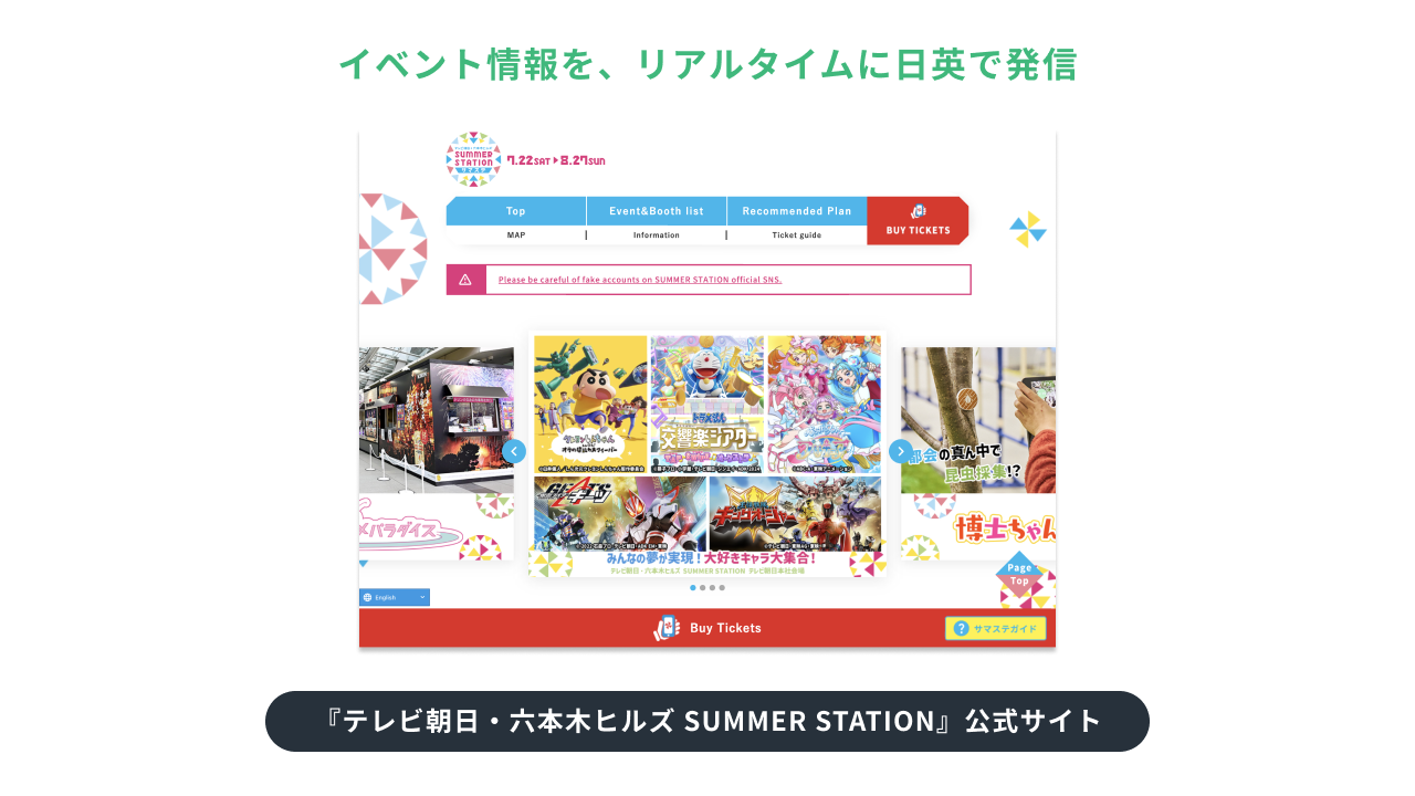 『テレビ朝日・六本木ヒルズ SUMMER STATION』の公式サイトを英語に対応しています。