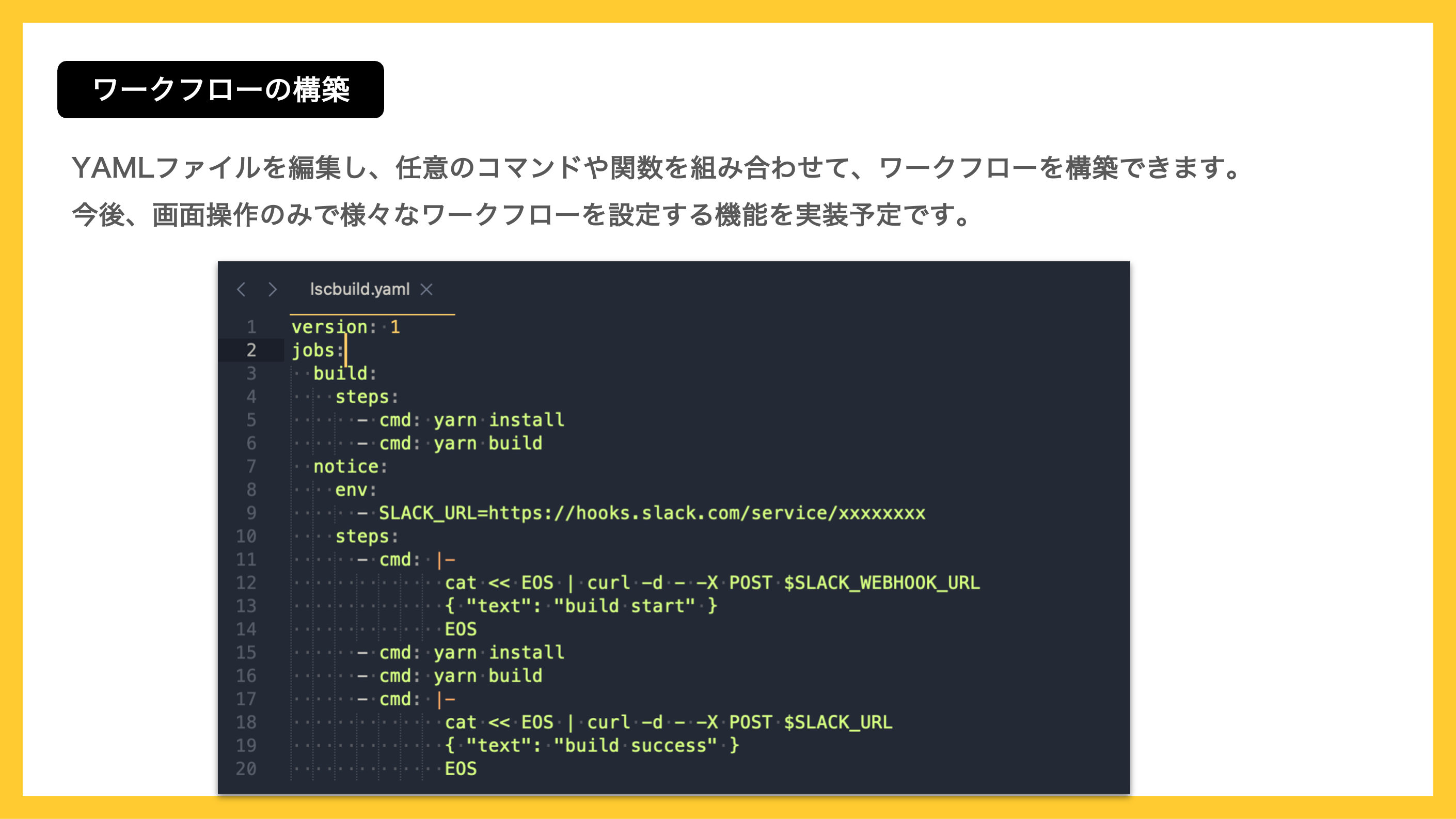 Backlog Gitと簡単に連携でき、複雑なCI/CDパイプラインを直感的に構築することができます。