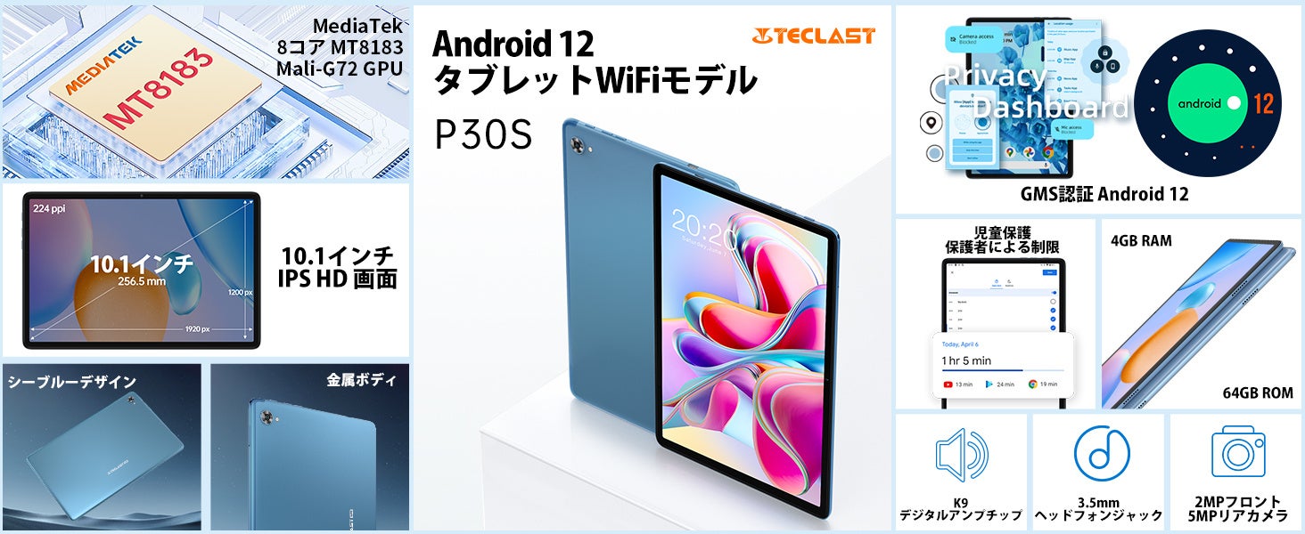 P30Sは、新世代のPureSound Audio スピーカーを採用し、独立したアンプチップに合わせて使用すると、臨場感あふれるオーディオ体験ができます。3.5mmヘッドフォンジャックを備え、様々なユーザーの好みに対応できます。また、保護者が懸念するタブレットの使用時間や使用アプリの選択などの問題点に対応し、新たな児童守護機能を開発しました。学びと遊びをバランスよく楽しめるタブレットになります。
