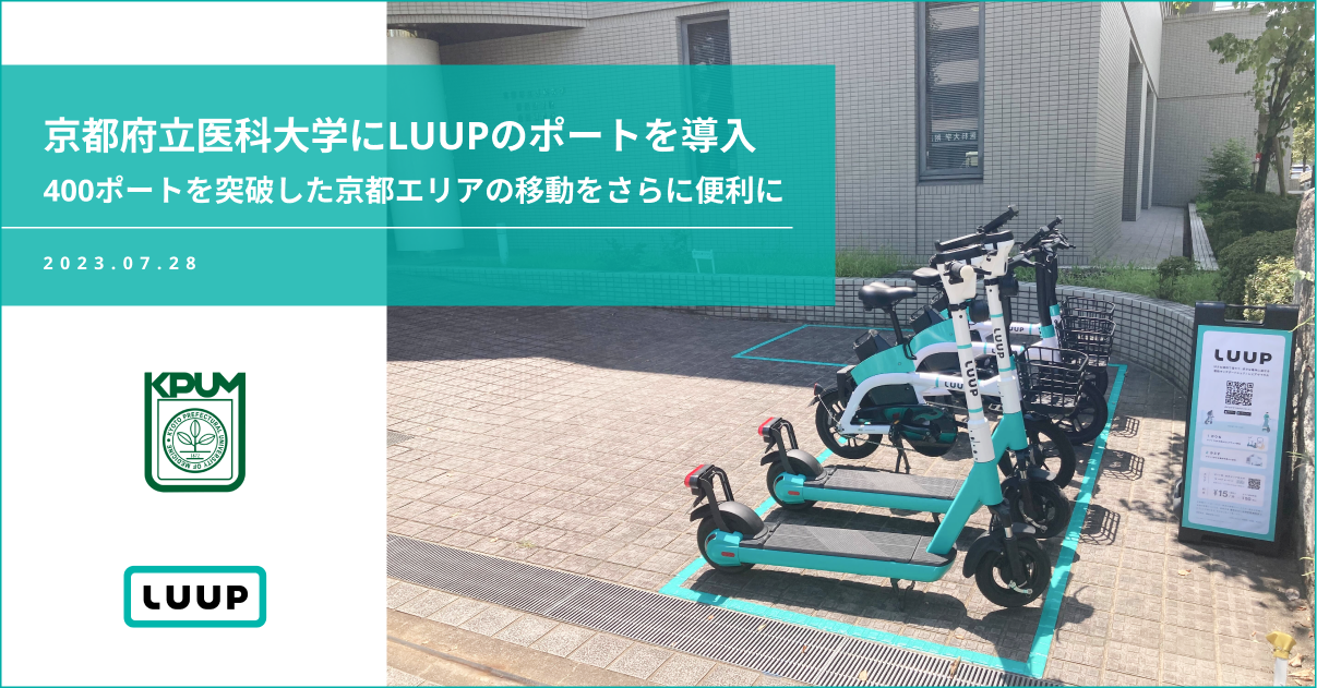 今回、京都府立医科大学へLUUPのポートを導入することで、学生の皆さまをはじめとする大学を利用する皆様、京都府立医科附属病院を訪れる皆様に周辺への短距離移動手段としてご利用いただき、キャンパス周辺の街の周遊性拡大および更なる活性化を目指します。