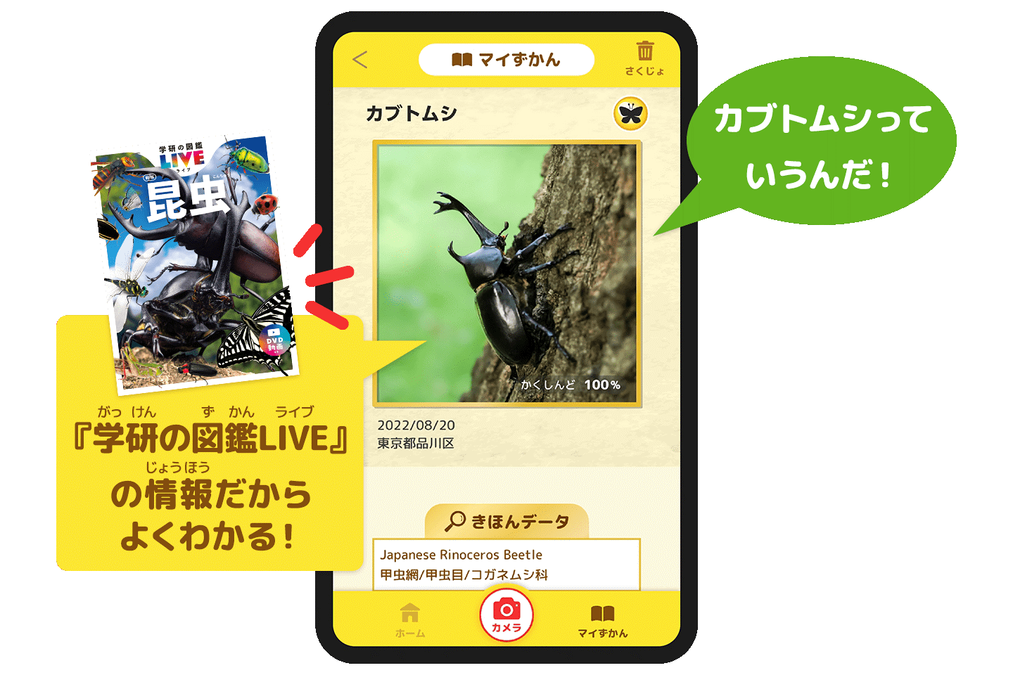 「ナニコレンズ」には、『学研の図鑑LIVE』の解説をもとにした身近な動植物を、約2,400種類収録しています。自ら調べる体験は、お子様の好奇心を刺激し、興味関心を広げます。また、お子様と一緒に会話しながら撮影することで、季節ごとの動植物について楽しく学ぶことができます。撮影した動植物について、気になったことやもっと知りたいことがあれば、ぜひ『学研の図鑑LIVE』でも調べてみてください!