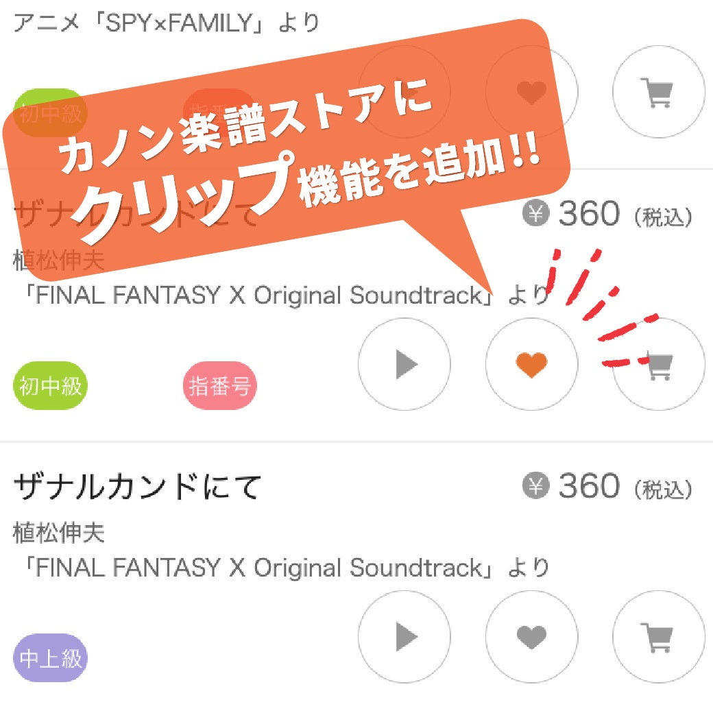 楽譜配信サービス「電子楽譜カノン」(https://www.canon-score.com/)を運営する株式会社ファン・タップは、2022年7月14日(木)よりカノン楽譜ストアにおいて、お気に入りの楽譜を「クリップ」できる機能をあらたに追加しました。