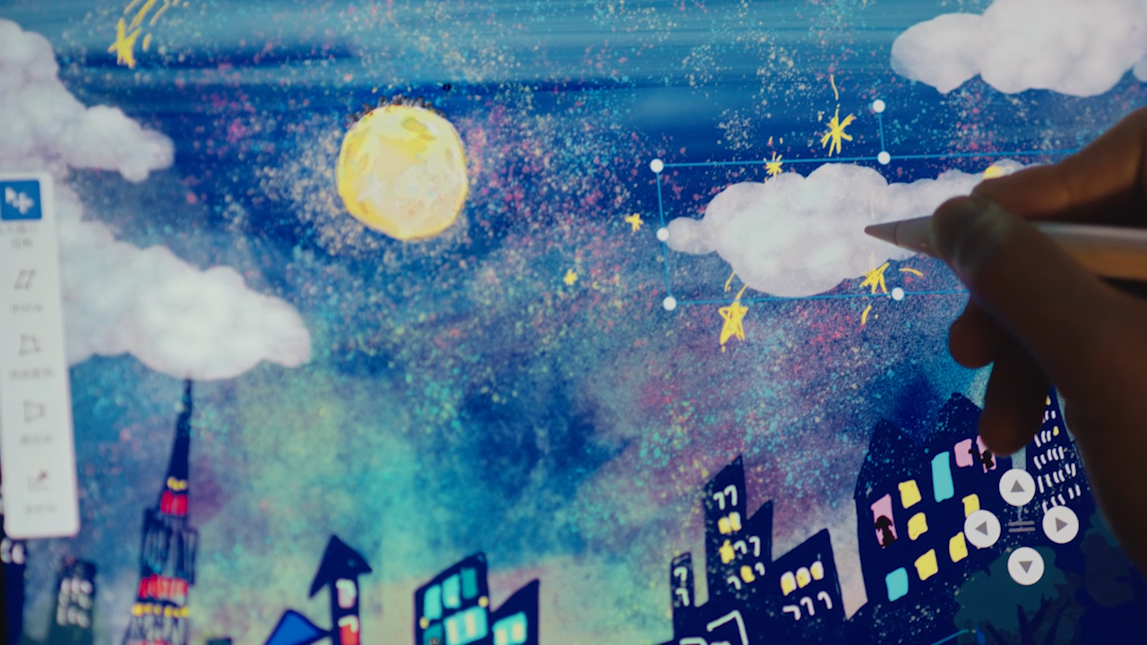 本CMは、一組の親子のある一夜の何気ないかけあいを描いています。庭から空を見上げ、慣れた手つきでiPadを使いこなし、夜空を描く少年。iPadとApple Pencilならではの機能で繊細な雲や星、空の霞を生み出し、刻一刻と移ろう夜空を夢中で描き続けます。そろそろ部屋に入るよう母親が声をかけると「あと20分!」とまだまだペンが止まらない様子。その姿に思わず呆れる母親でしたが、寝付いた彼のそばにあるiPadを片付けようと手に取ると、そこに広がる作品に驚かされます。絵を拡大していくと、そこには月面からこちらに向かって手を振る男の子や町並み、家の中には両親の姿があり、宇宙人も人間もみんな手を取る温かい世界が広がっていました。我が子が持つ無限の想像力や可能性に驚かされるとともに、誇らしく我が子を見つめる母親を、月明かりが優しく照らします。