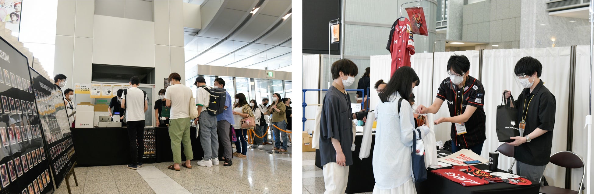 当日は、開場前から行列ができるほど、イベントを心待ちにする多くのファンの皆様にお集まりいただきました。物販コーナーでは、各プロチームのグッズやPMJLオリジナル選手カードなどが販売され、親子連れの方やカップルの方、おひとりの方などたくさんのファンの皆様から大好評をいただきました。