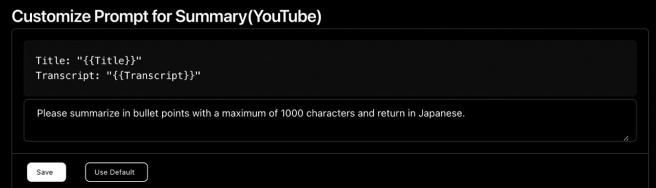 カスタムプロンプトの利用方法も簡単です。翻訳アプリを使い、自分の要望を英語に変換します。そして、Glarityの「Customize Prompt for Summary」画面にコピー&ペーストし、保存ボタンを押すだけで、自分が好きな形で箇条書きで要約してもらえます。