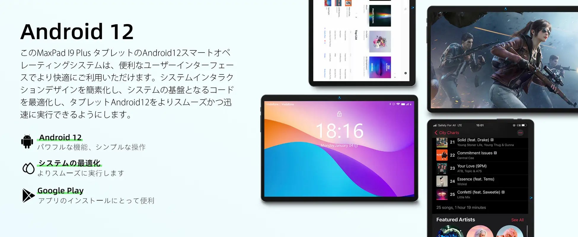 BMAX I9Plus タブレットは最新のAndroid 12 システムを搭載しています。 元の Android 11 システムと比較して、より安定した動作能力を備えています。 収納スペースが大きくなったので、生活に残しておきたい写真、音楽、電子書籍をより多く保存できます。