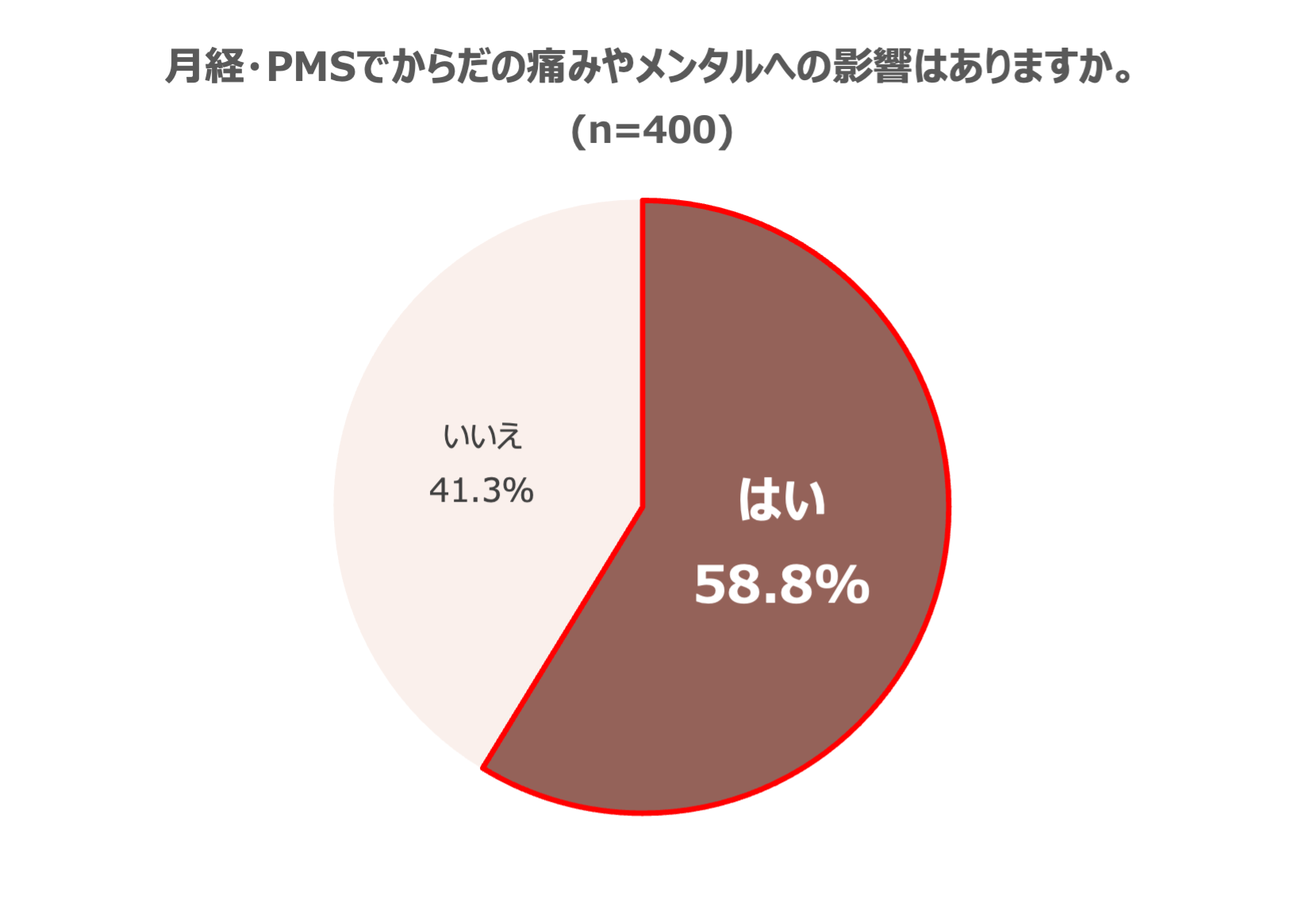 月経・PMSでからだの痛みやメンタルへの影響について、全体の58.8%が「影響がある」と答えました。