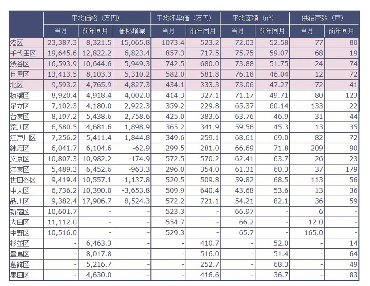当社が調査した2023年6月の東京23区、行政区別分譲実績データ(速報値)です。