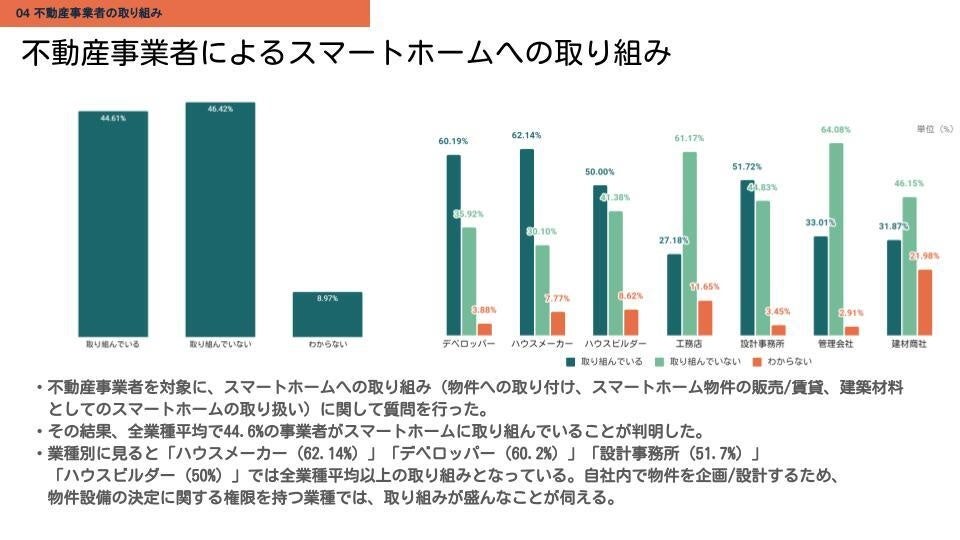 不動産事業者の44.6%がスマートホームサービスの導入・販売・提供に取り組んでいる