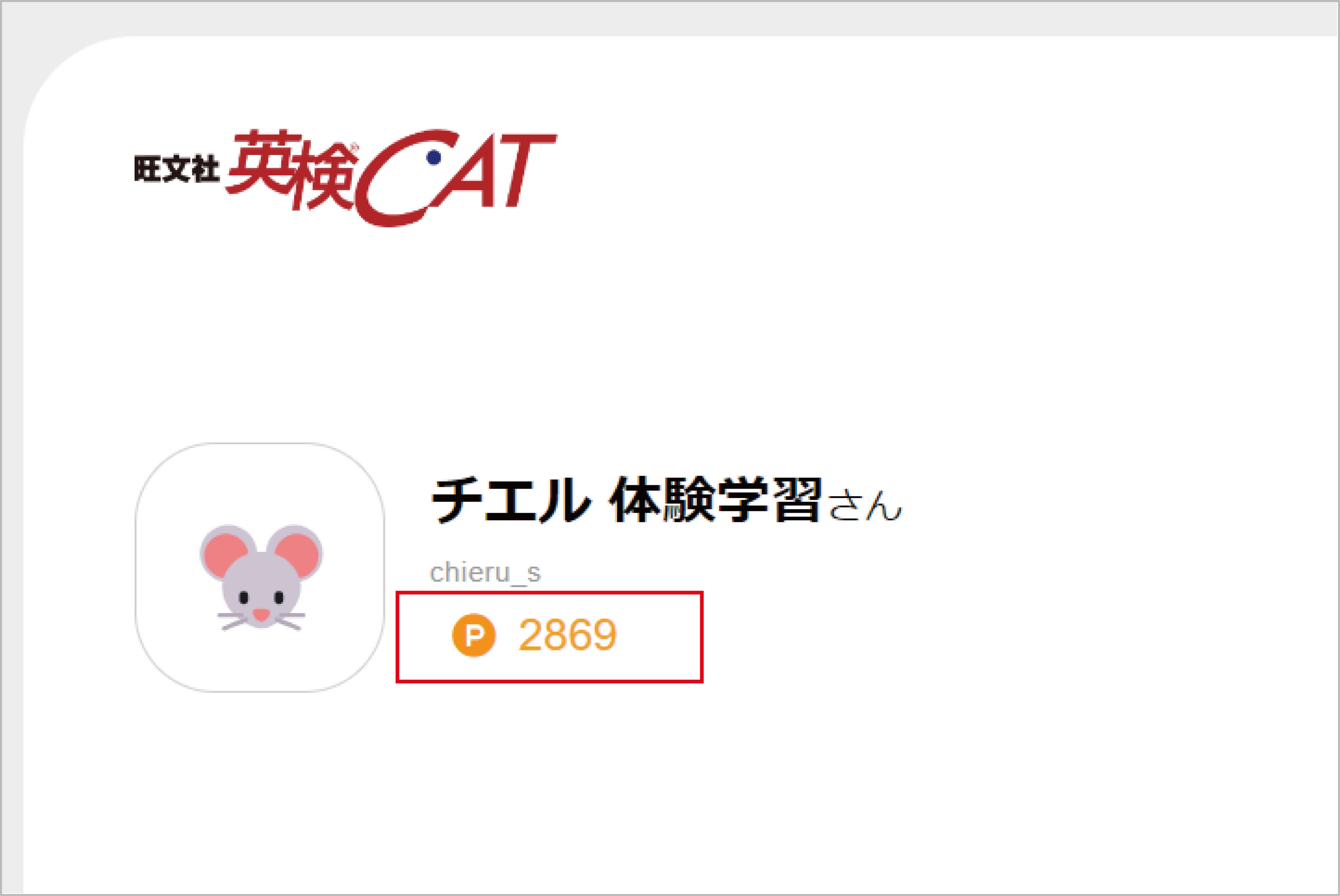 『英検®CAT』の学習をするとポイントが貯まる機能を搭載しました。6つの学習モードのうちどれでも1回学習をする毎に1ポイントが加算されます。学習ポイントはTOP画面に常に表示されます。日々の学習での頑張りが可視化されるようになり、『英検®CAT』での学習を継続するモチベーションとなる活用が可能です。