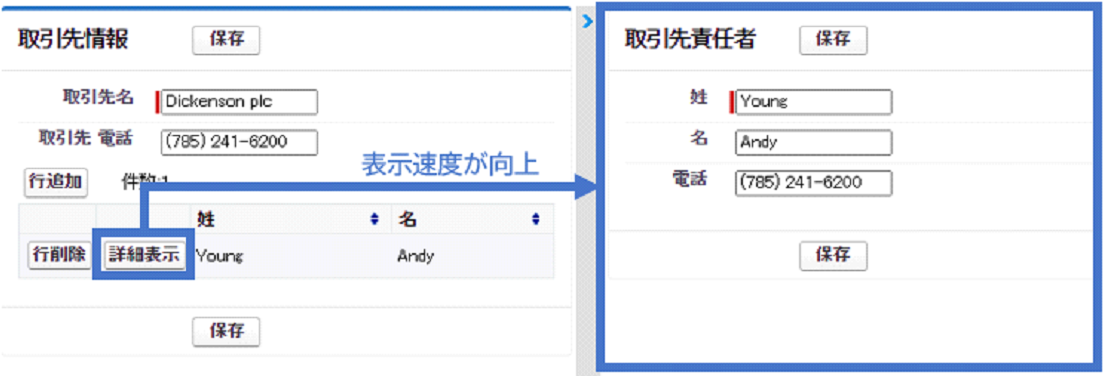 データテーブルの詳細表示ボタンを押下して詳細パネルにレコード情報を表示する際の速度が向上しました。