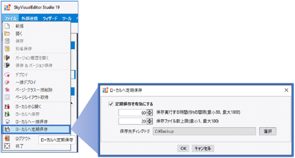 Studioで作成中のページデータを定期的にローカル(Studioを実行しているPCのファイルストレージ内)へ保存する新機能「ローカルへ定期保存」が追加されました。