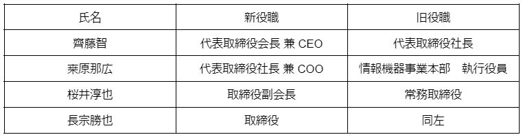 1999年より代表取締役社長を努めてきた齊藤が代表取締役会長となり、後任に執行役員の桒原が代表取締役社長に就任いたしました。
