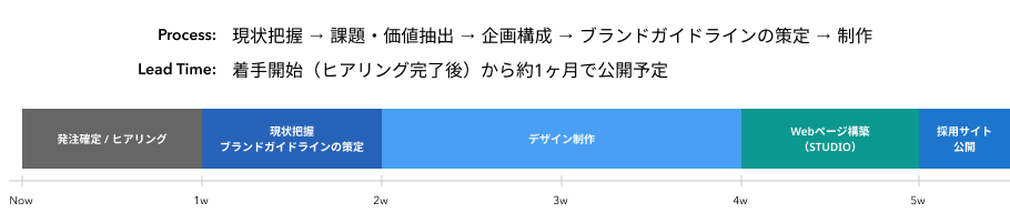 企画した構成を元に採用サイトを制作します。着手開始から最短1ヶ月で公開予定(※1)です。