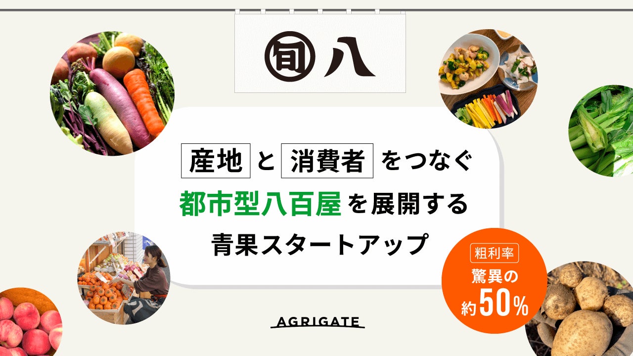 アグリゲートは、産地と消費者をつなぐ都市型八百屋「旬八(しゅんぱち)青果店」を運営するスタートアップです。